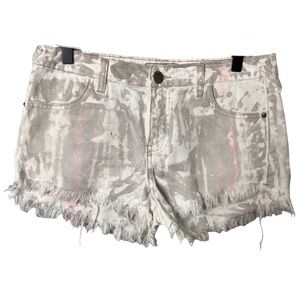 Free People Gray and Pink Tie Dye Cut Off Shorts Frayed Hem