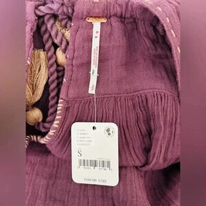Beautiful folk-inspired maxi dress designed in a micro-plisse fabrication with embroidery throughout and smocking at top in a square-neck, ruffled bottom silhouette.