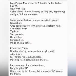Free People In A Bubble Puffer Jacket Size Medium NWT