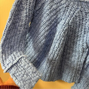 Free People In A Swirl Blue Chunky Knit Crewneck Sweater Women's Xsmall