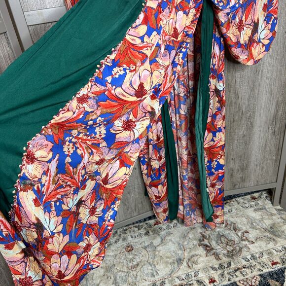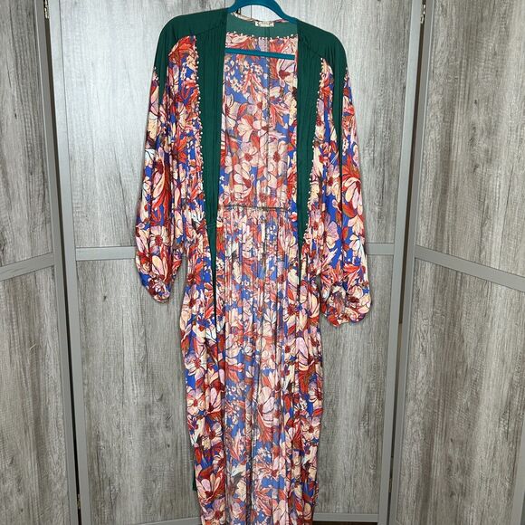 Free People In Bloom Kimono Long Satin Sinched Sleeves Robe Floral Print Size L