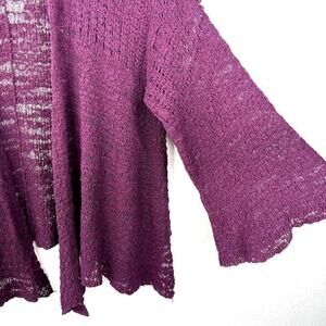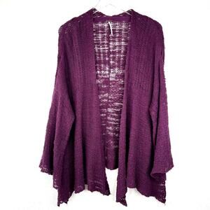 Free People In My Element Kimono Cardigan Plum Purple Open Knit Bell Sleeve SM