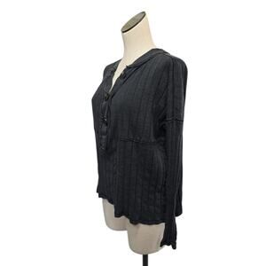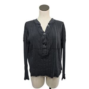 Free People In The Mix Charcoal Grey Top Womens Extra Small Buttons Stretchy