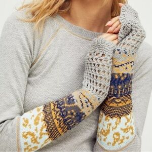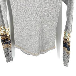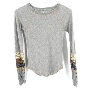 Free People In The Mix Cuff Crochet Long Sleeve Crewneck Top in Heather Grey