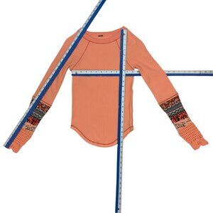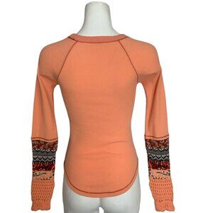 Free People In The Mix Cuff Thermal Top XS Desert Orange Combo Long Sleeve Crew