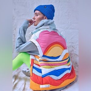 Look and feel show-stopping-good in this warm vest, featuring a durable, water-resistant fabrication and warm fill with quilted, colorful detail throughout; the oversized silhouette makes it perfect for layering in cold weather.