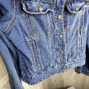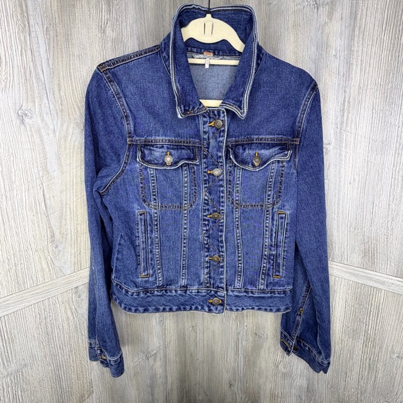 Free People Chic indigo denim jacket with classic collar. Ideal for everyday style. Button Front with button flap pockets. Approx measurements pit to pit 20.5β, Length from Shoulder to Bottom 21β. Great Condition π