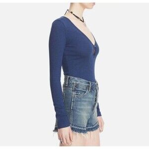 Free People Indigo Navy Blue Tate Layering Keyhole Tee PS