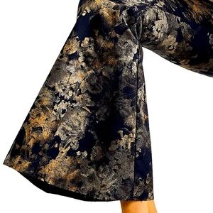 Free People Inferno Stretch Denim Metallic Abstract Floral Raw Hem Flare Jeans