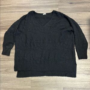 Features: Soft knit fabrication, deep V-neckline, pointelle detail, long-sleeves with ribbed cuffs, slight high-low hemline