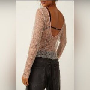 Free People Intimate Low Back filter finish pink rare med NWT MSRP $168 heavy fishnet super cute and great for the club or festival season