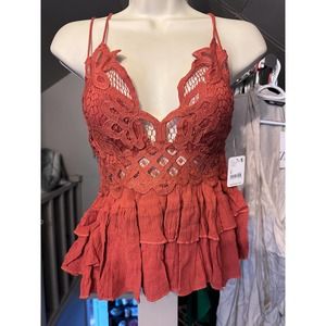 Free People Intimately Adella Lace Smocked Back Cami Winding Roads Size S