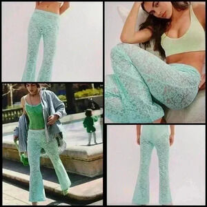 Free People Intimately All Day Lace Floral Sheer Coquette Flare Trousers