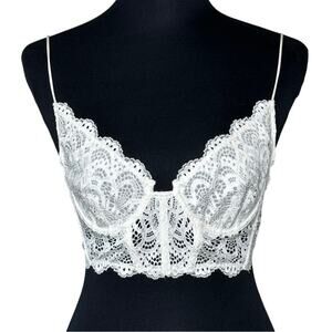 Free People Intimately All Yours White Lace Longline Underwire Bra Small New