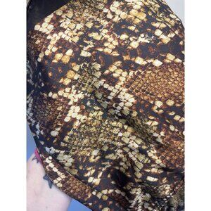 The Free People Intimately Animal Print Women's Bodysuit in size L features a scoop neck, snap closure, and is made from lightweight rayon fabric. This black and brown bodysuit is perfect for casual occasions and is accented with a strap. Sleeveless with a classic/fitted sleeve, this bodysuit is machine washable and showcases an animal print pattern, ideal for any season. The brand, Free People, offers a regular fit and a basic style, making it a versatile and stylish addition to any woman's wardrobe.