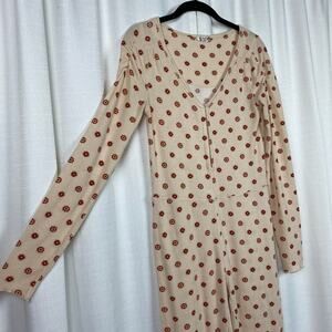 Free People Intimately Beige Print Waffle Knit Home Alone Long John’s Jumpsuit Sz.XS