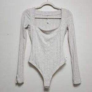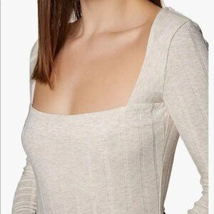 Free People Intimately Beige Ribbed Square Neck Long Sleeve Bodysuit Size M