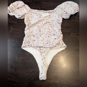 Free People Intimately Bella Floral Puff Sleeve Body Suit, XS