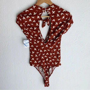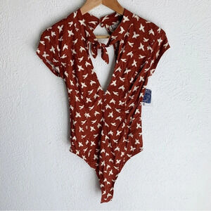Free People Intimately Billie Bodysuit in Terracotta Bird Print NWT Sz XS
