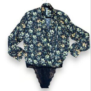 Free People Intimately Black Elsa Floral Printed Bodysuit - Size Small