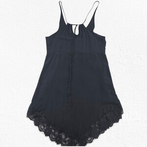 Free People Intimately Black Lace Slip Nightgown V-Neck Chemise Size Medium