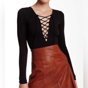 Free People Intimately Black Lace Up Shirt