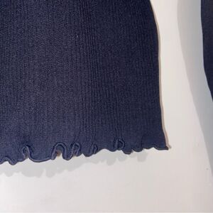 Free People Intimately Black Lettuce-Edge Crop Long Sleeve Top XS/S