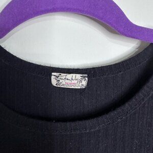 Chic black tee with short sleeves. Perfect for casual wear. Super cute and soft. Sean coming undone in small section in picture