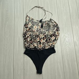 Free People Intimately Women's Black & White Floral Halter Liza Bodysuit Size Medium