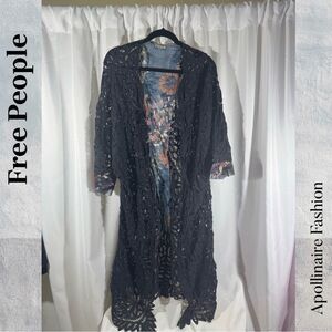 Free People Intimately Black Lace Kimono Floral insert Size M/L New