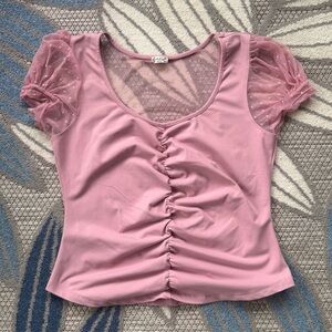 Free People Intimately Blush Up Polka Dot Lace Ruched Blouse Size XL Mauve Pink