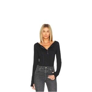 Free People Intimately Bodysuit Black Long Sleeve Sloane Size S Snaps Top Blouse new in package see pictures for more details and measurements