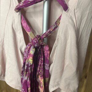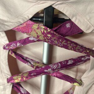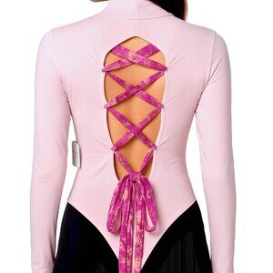 Free People Intimately Bodysuit Large Mauve Chalk Lace Up Back Long Sleeve NWT