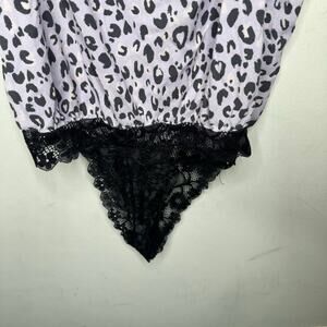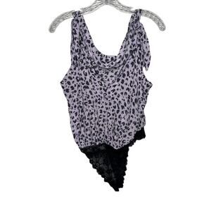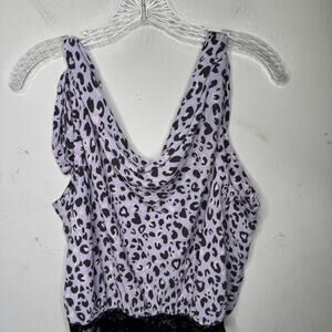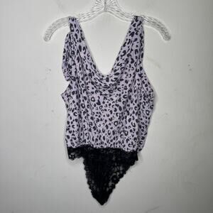 Free People Intimately Bodysuit Size M Purple Leopard Print Cowl Neck Lace Trim