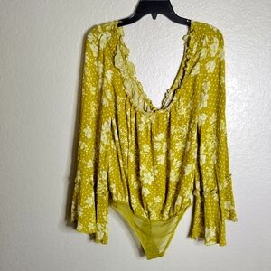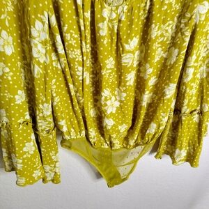Free People Intimately Bodysuit Yellow One On One Date Floral Sz M