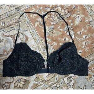 Free People Intimately Bralette 34B Front Closure T Strap Black Lace Underwired