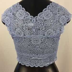 Free People Intimately Bralette Blue Lace Crop Top Sweatheart size S/P NWOT Super soft. Beautiful Floral Lace pattern.