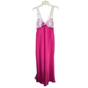 Indulge in elegance with this vintage Euphoria nightgown, featuring a luxurious pink satin body and delicate white lace details.