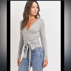 Enhance your wardrobe with this chic gray blouse. The stylish tie-waist design offers a flattering fit for any occasion.