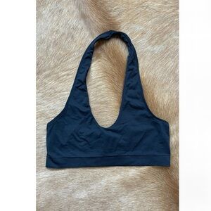 Classic halter-neck bra featured in a soft fabrication with a scoop-neckline and bold open back.