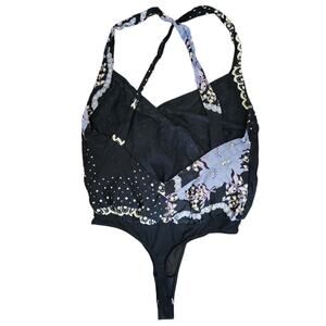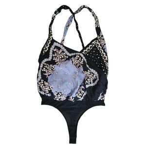 Free People Intimately Cotton Bodysuit M Black Multi Boho Cottagecore Relaxed