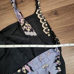 Free People Intimately Cotton Bodysuit M Black Multi Boho Cottagecore Relaxed.
