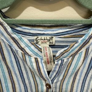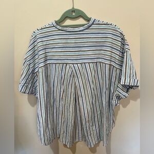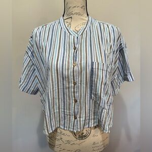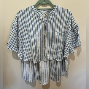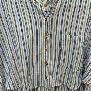 Free People Intimately Cotton Striped Cropped High Low Button Down Top Sz M
