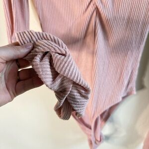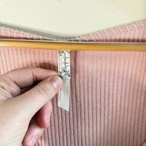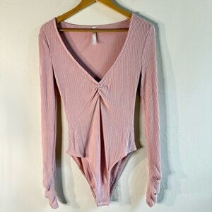 Free People Intimately Cozy Up To Me Pink Ribbed V-Neck Bodysuit Size Small