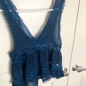 Free People Intimately Deep V Trapeze Lace Cami - In Blue - Small