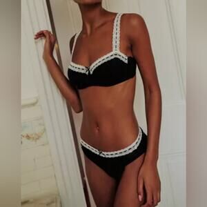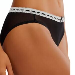 Free People Intimately FP NEW So Sweet Black w/White Lace Trim Bikini Brief M