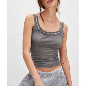 Free People Intimately FP NEW So Sweet Gray Ribbed Lace Ribbon Cami Tank Top S