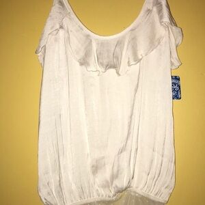 - Scoop neck with ruffle accent