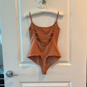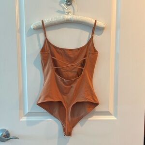 So chic and strappy, this sleek bodysuit is featured in a soft fabrication and sleeveless silhouette with a scoop neckline and crisscross detail at the back. This versatile bodysuit can be dressed up or down for any occasion.