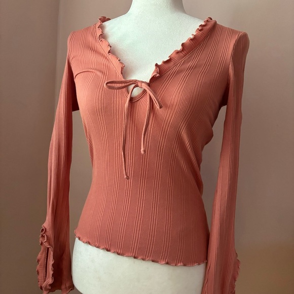 Free People Intimately Fitted Long Sleeve Top in Coral Pink